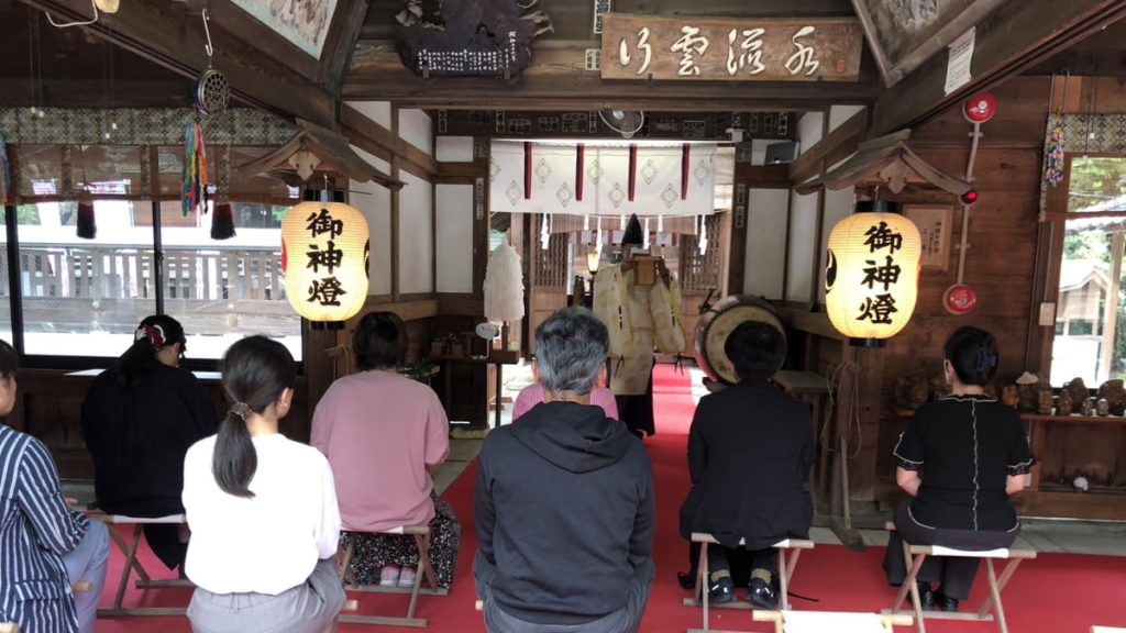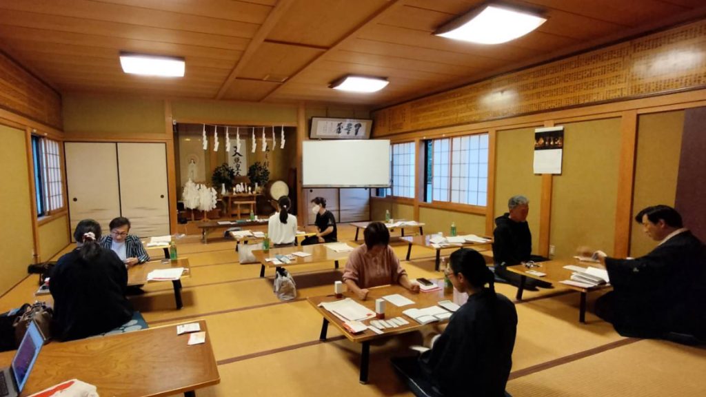 社務所の天照大御神の前での講義では